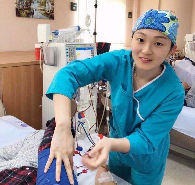 由于透析室工作的特殊性,面对透析患者,与其说是患者,但更像是亲人。“爷爷早,阿姨早,叔叔好!”每天早晨见面都是声声热情的招呼,以年为单位的护患关系,使医护和患者成了朋友,有时我们也会聊聊家常,开开玩笑。不论寒冬还是酷暑,风雨无阻,早七点我们会准时进入透析室,开始一天的工作。中午是我们最忙的时间,吃饭像打仗,恨不得十分钟塞进肚子里,之后马上开始下午的工作。每天下班结束,虽然疲惫,但心里是踏实的,因为我们精心的治疗护理,透析患者又平安的度过了一天。
