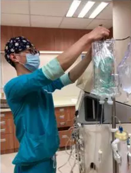 5.11日晚上八点了,负责床旁CRRT的武强护士还在加班工作,今天有两个患者需要同时做CRRT,他楼上楼下来回跑,病情刚稳定,又加了两个急诊,一个是肝癌、肝硬化、肾衰患者,水负荷得有20kg多,另一个是尿毒症、心衰、消化道出血患者,两个病人均病情危重、需要输血浆、监护等,我和武强一直守护在患者床旁,严密观察生命体征,调整各项参数,我一直到凌晨一点半治疗结束,看到患者水肿减轻,生命体征好转,我也松了一口气。