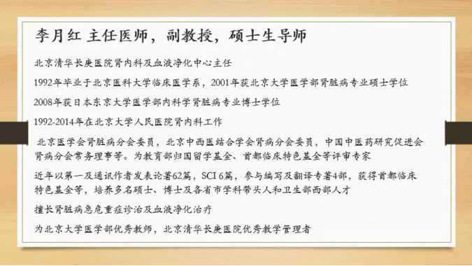 北京清华长庚医院肾内科成立于2014年,依托清华大学和北京市医管局的平台,借鉴和发展台湾长庚纪念医院先进的管理模式,引进世界先进水平的仪器设备,是国内一流的肾脏病诊治和研究中心。有主任医师1名,副主任医师1名,主治医师2名,住院医师5名,分别来自北大人民医院、北医三院、北大医院、协和医院和解放军总医院。肾脏内科由门诊、病房、血液净化中心、腹膜透析中心和肾脏病理组成。诊治范围包括各种急慢性肾功能衰竭、原发和继发性肾小球疾病、肾病综合征、血液净化及透析通路相关并发症等。
