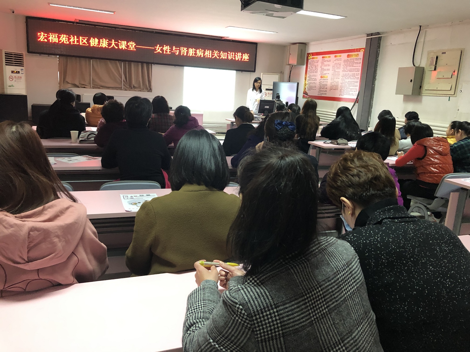 郑各庄村委会二层会议室居民座无虚席,徐建伟主任对李主任的到来表示感谢,指出这是在宏福苑社区首次举办专门针对女性的肾脏病宣教活动,居民对李主任的到来期盼已久,希望通过此次活动增进女性对肾脏病的认识,加强社区卫生服务中心和清华长庚医院肾内科的合作。