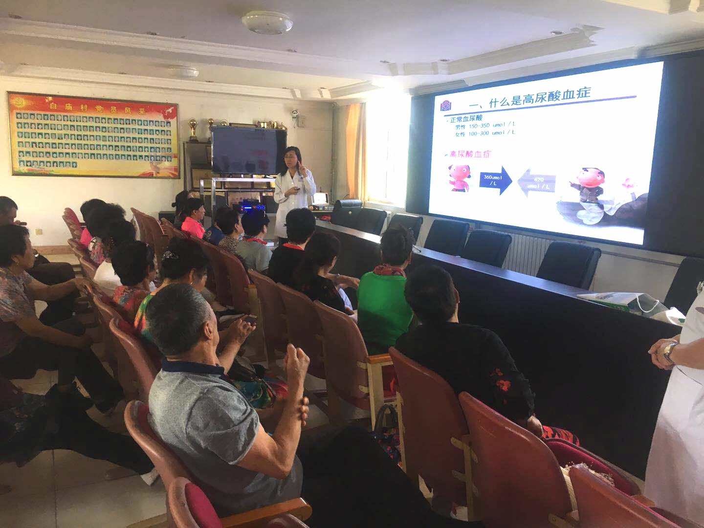 北京清华长庚医院5月30日电 (肾脏内科)5月28日北京清华长庚医院肾内科李月红主任应北七家镇平西府卫生服务站李雪松站长的邀请,为附近社区居民进行肾脏病健康知识大讲堂的科普讲座,介绍高尿酸血症和痛风的有关知识。