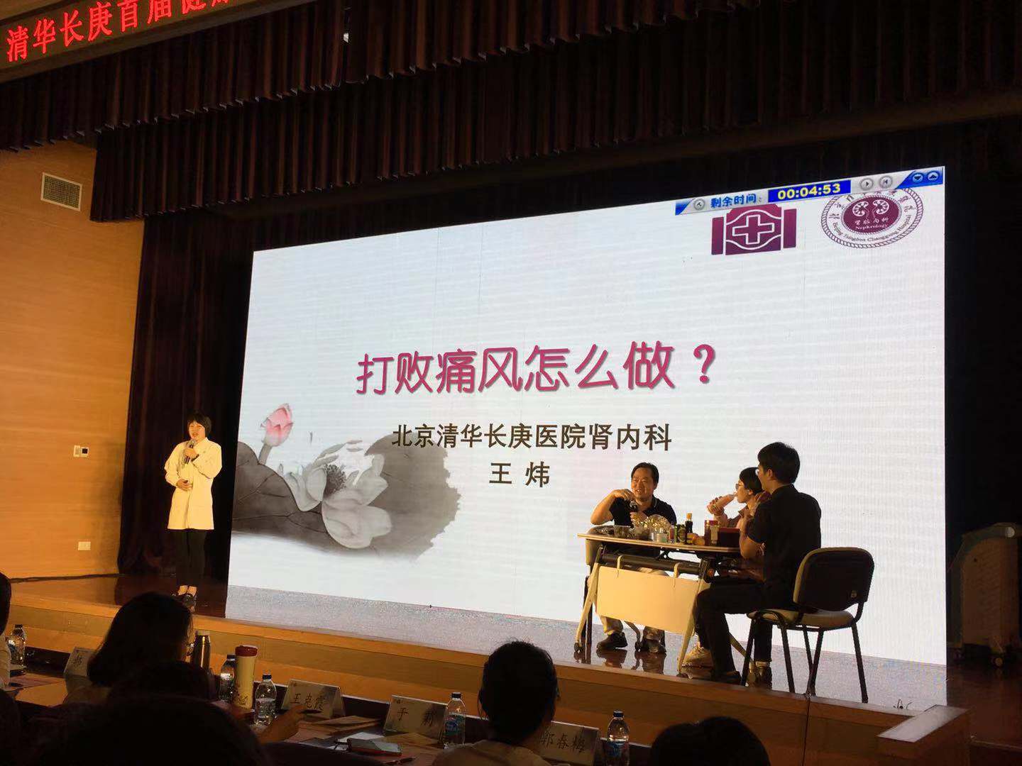 肾内科王炜主治医师初赛表现出色,以高分进入决赛。肾内科庄震副主任医师,病房张东敬护士长,王冲住院总医师积极配合,在北京电视台《全民健康学院》节目组制片人于莉老师的指导下,肾内科团队以情景剧形式,通过精美的幻灯片,幽默的语言,丰富的道具,深入浅出的讲解痛风发病机制,饮食注意事项及治疗原则,得到评委专家及现场观众的一致好评,获得了二等奖!