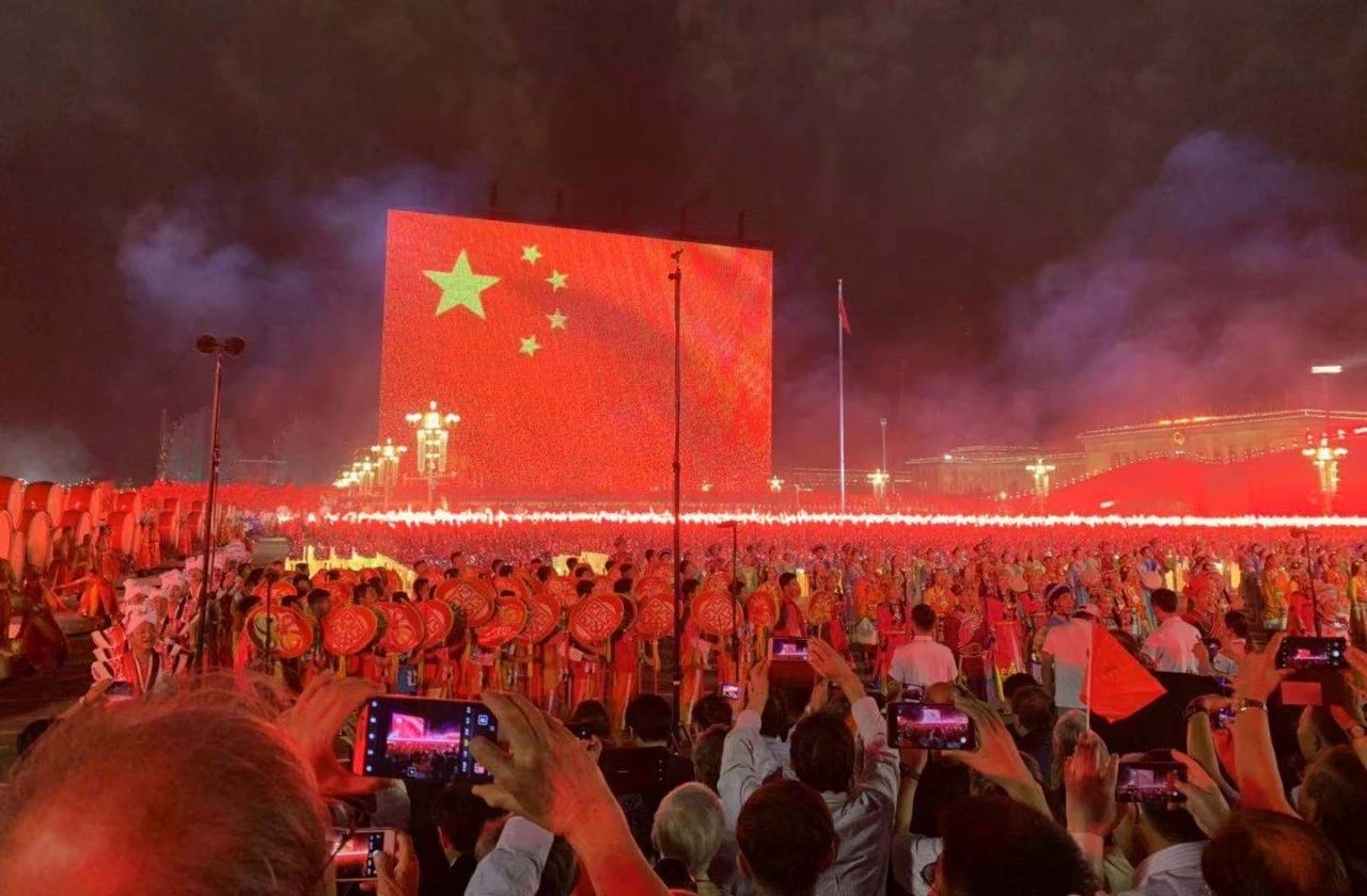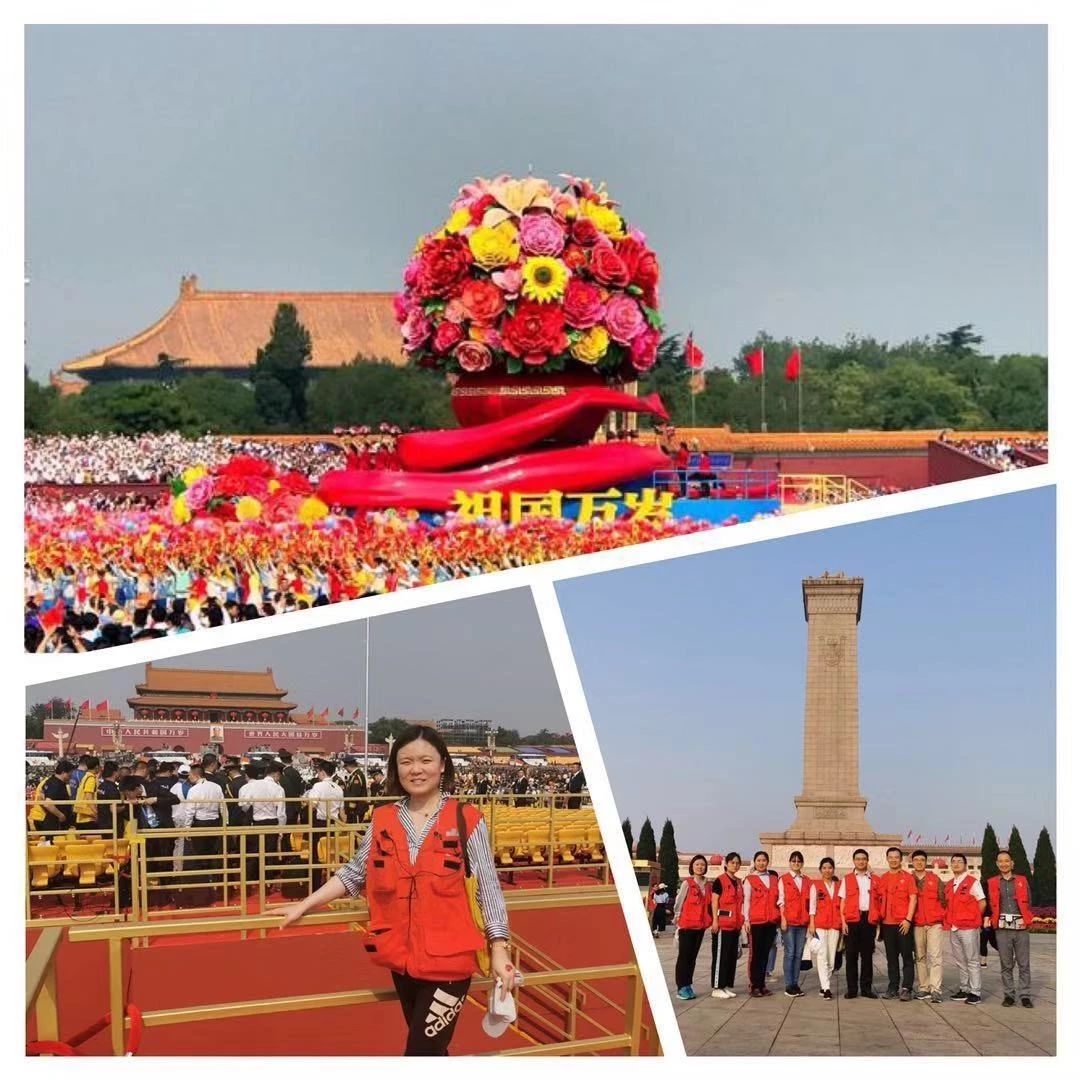 武向兰护士长的儿子作为大学生代表,在天安门广场进行游行表演,“今天是我值班,看到儿子所在的建国伟业方阵,自信满满,昂首阔步,我激动的拿起小国旗给儿子加油,祖国如此强盛,自豪感油然而生,相信走在天安门广场上的孩子们,会有同样的心情,会更加热爱我们的祖国,更加奋发图强。集训和排练暑假就开始了,晒的黑黑的,基本放弃了周末休息,彩排的时候都是凌晨出发,集结地待命,困了就真的躺在地上睡觉,见过满天星光和晨曦初露的长安街,这些00后的孩子,大部分是独生子,都没有怨言,接到命令就立即投入状态,兴奋地准备,一丝不苟的执行。昨天送他去学校,听他讲述着彩排中的辛苦与欢乐,体会着他的荣誉感、幸福感,我想这段时光将会是他们珍藏一生的宝贵记忆。”