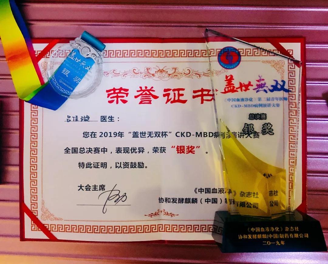 吕佳璇医生赛后表示,决赛现场得到知名教授点评,受益匪浅,收益良多。与全国各知名院校的优秀青年医师同台竞技,互通有无,取长补短,是一次非常难得的学习经历。银奖即是鼓励,更是激励,今后要以更高的医学素养,更好的学识为患者服务,减少CKD-BMD发病率,提高其生活质量!