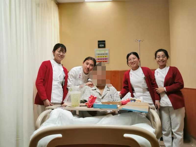 病房张东敬护士长是人文医学的践行者,病房充满暖暖的人文关怀氛围。每天看着她们忙碌的身影,听着亲切的招呼,小明特别懂事听话,积极配合治疗。护士姐姐们给他送来了蛋糕、生日礼物和小食品,他总是不舍得吃,一直留着,那是他心里甜甜的幸福。