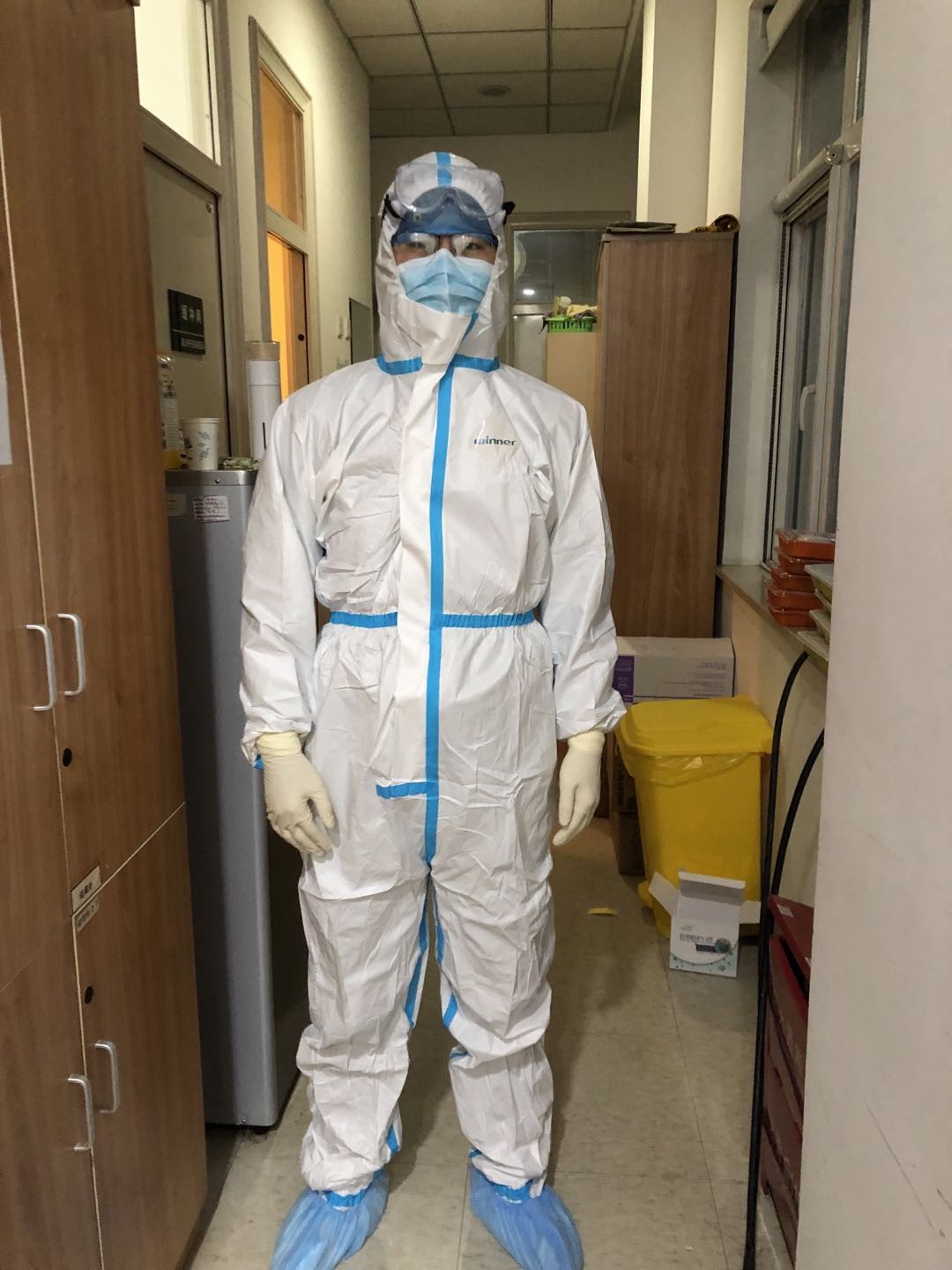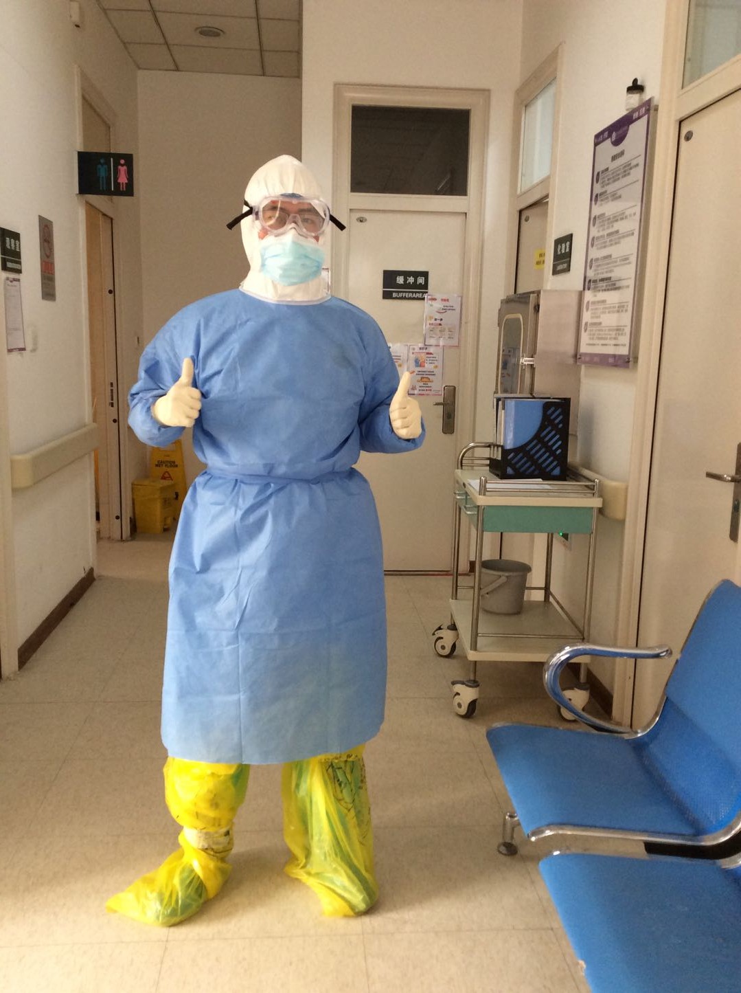 大年初二,我出发热门诊。北京仿佛被按下了暂停键,往日车水马龙的街道上变得罕见的安静,这才恍然,原来堵车和拥挤才是平安和盛世繁华。前期经过紧张而有序的防护培训,我全副武装,穿上连体防护服、隔离衣,戴上眼罩、面屏、手套,穿上隔离鞋套,像个外星人,觉得憋闷。没想到农历新年刚过,前来筛查的发热患者比想象中的多得多。幸亏提前熟悉了发热门诊筛查和诊治流程,从上个班次大夫那里学了个小妙招,接班前几小时不喝水,可以尽量避免去厕所,节省穿脱防护服的时间和防疫物资。12个小时,60个发热病人,2例疑似,通过医院早已安排好的路线,有条不紊的完成了隔离和核酸采样工作。