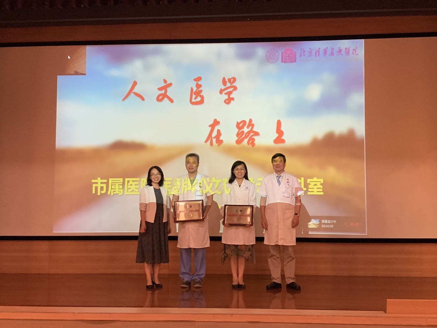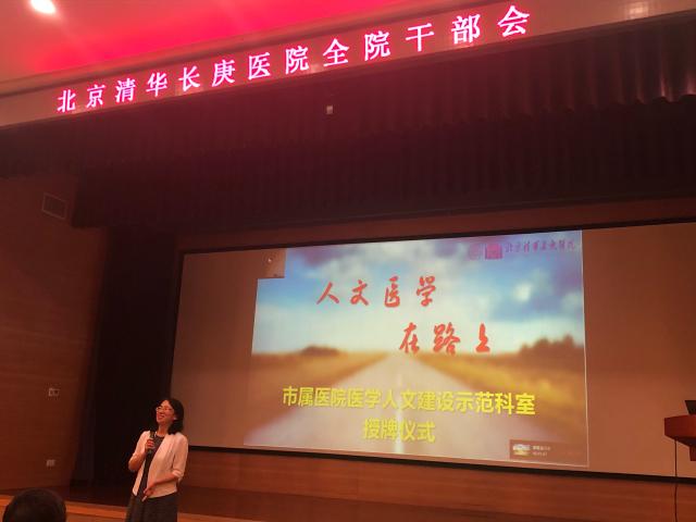 8月14日全院干部会上,周月红书记和董家鸿院长给获批北京市属医院第二批“医学人文建设示范科室”的肾内科和全科医学科进行授牌。肾内科持续多年开展科普宣教,走遍医院周边的社区,细心救治福利院的尿毒症患者,每年开展医患联欢会,秉承“勤奋、创新、仁爱、务实”的理念,彰显医者的大爱,创建了和谐的医患关系。