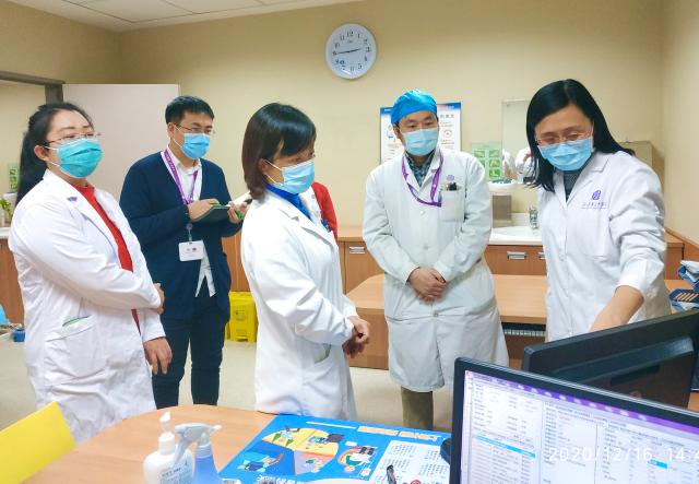12月11日,北京市血透质控检查专家组由同仁医院黄雯教授、武警总院耿燕秋主任、宣武医院王君梅护士长和北大医院樊照鑫技师组成,肾内科李月红主任、血液净化中心武向兰护士长、韩梁工程师、经管组唐尧和透析医护参与了迎检。