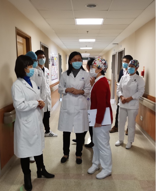 李月红主任介绍了我院血透发展现状,专家组对透析用水进行了现场采样检测,对质控数据上报、接诊区和治疗区的感控管理制度和流程、三级预检、疑似患者透析诊疗流程等进行了检查,对手卫生、医护职业暴露管理流程等做了详细询问。专家组对我院血透室医护在疫情期积极努力的工作,血透质控管理质量给予了充分肯定。强调要高度重视新冠疫情防控,制定透析个体化治疗方案,进行精细化管理。在空间和硬件配置、空气消毒流程、技师专业化配置方面给予了建设性指导。