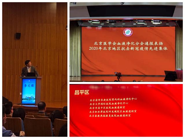 北京医学会血液净化学分会副主任委员刘文虎教授主持了开幕式,主任委员李文歌教授做了学会报告。北京医学会封国生会长、中日友好医院刘鹏副院长对北京市血液净化事业的发展给予了高度肯定,尤其强调全体血液净化同仁坚守岗位,在疫情期做出了不平凡的贡献,对在疫情期做出突出贡献、包括我院在内的大的优秀血液净化中心进行了表彰。
