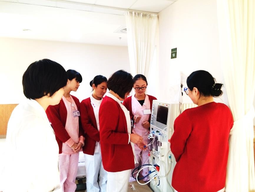 2014年11月,北京清华长庚医院肾脏内科,包括门诊、病房、血液透析室全部设备已安装调试完毕,为提升医护人员知识技术水平,及时发现问题,保障正式开院后患者就诊流程更加顺畅合理,北京清华长庚医院肾内科全面开展开业演练 。11月6日下午,在李月红主任、肖晨护士长带领下,全体医护人员在血液透析室举行了透析演练。李月红主任首先对透析患者的诊治流程、信息化管理、透析过程中并发症、突发事件处理等问题进行了详细讲解,肖晨护士长讲解了操作流程、应急预案及血管通路的并发症处置。医护人员与信息科充分交流,提升技术素质,以便开业后为患者提供高品质的服务。