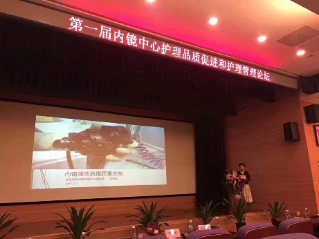 3、2017年5月8日,我科举行了第一次内镜中心护理品质促进和护理管理论坛。主要就新版法规的内容解读、新规范下的标准化内镜清洗消毒流程、诊疗工作中的无菌操作要点、内镜清洗消毒流程关键环节质量控制、内镜环氧乙烷灭菌技术等方面进行了培训,取得了圆满成功。