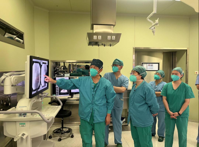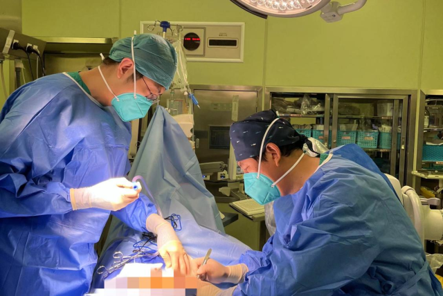 王贵怀主任、陆洋医生为受试者手术