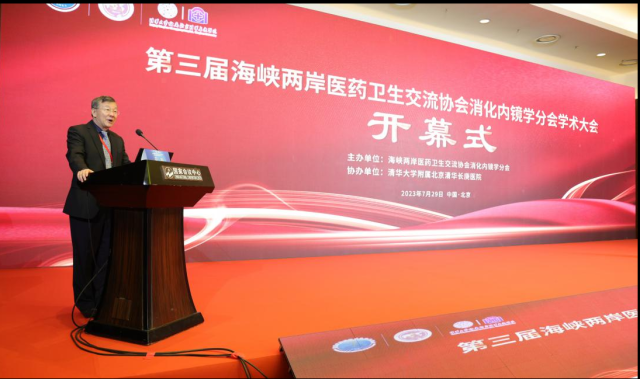 中国工程院院士、清华大学临床医学院院长,清华大学附属北京清华长庚医院院长董家鸿教授致辞,他表示海峡两岸医药卫生交流协会消化内镜学分会已成功举办两届学术会议,本次会议消化内镜学同仁再次相聚一堂,预祝会议顺利召开!