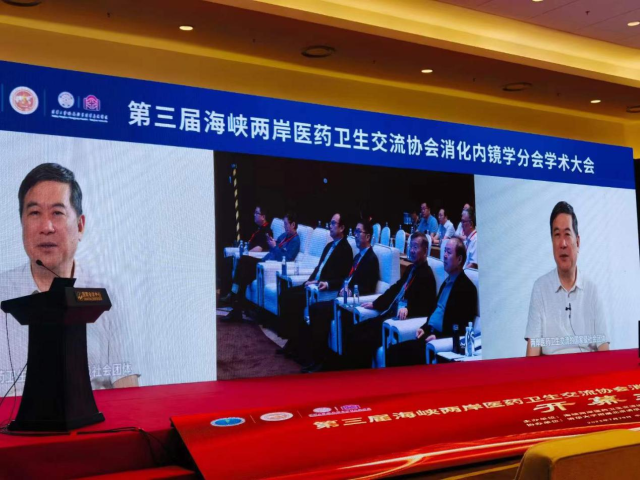 海峡两岸医药卫生交流协会消化内镜学分会主任委员、海峡两岸医药卫生交流协会消化病学分会副主任委员、清华大学附属北京清华长庚医院内科部部长姜泊教授致辞,他表示良好的开端奠定了良好的学术氛围和基础,相信本届学术盛会能充分展现我国消化内镜学领域的学术水准,拓宽视野和思路,加强海峡两岸互学互鉴,为广大临床医师提供持续学习、了解新技术和新进展的学术性平台,藉此不断加深海峡两岸医学学术交流,协同创新,共同为推进两岸消化内镜领域交流合作、融合发展贡献力量!