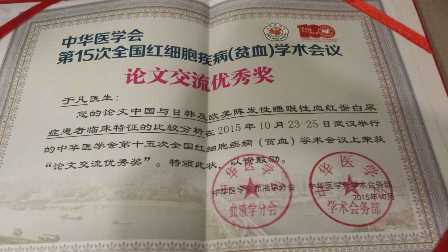 清华长庚医院肿瘤中心2015年11月24日电(通讯员 李墨丹)2015年10月23日,中华医学会第15次全国红细胞疾病(贫血)学术会议在武汉召开。会议讨论的问题包括再生障碍性贫血、MDS、溶血性贫血及相关疾病的造血干细胞移植等,其中MDS的遗传学改变及去甲基化治疗为本次会议的亮点及热点问题。会议期间,我院肿瘤中心于凡主治医师以『中国与日韩及欧美阵发性睡眠性血红蛋白尿症患者临床特征的比较分析』为题代表北京清华长庚医院进行了大会论文交流,并斩获优秀论文奖。