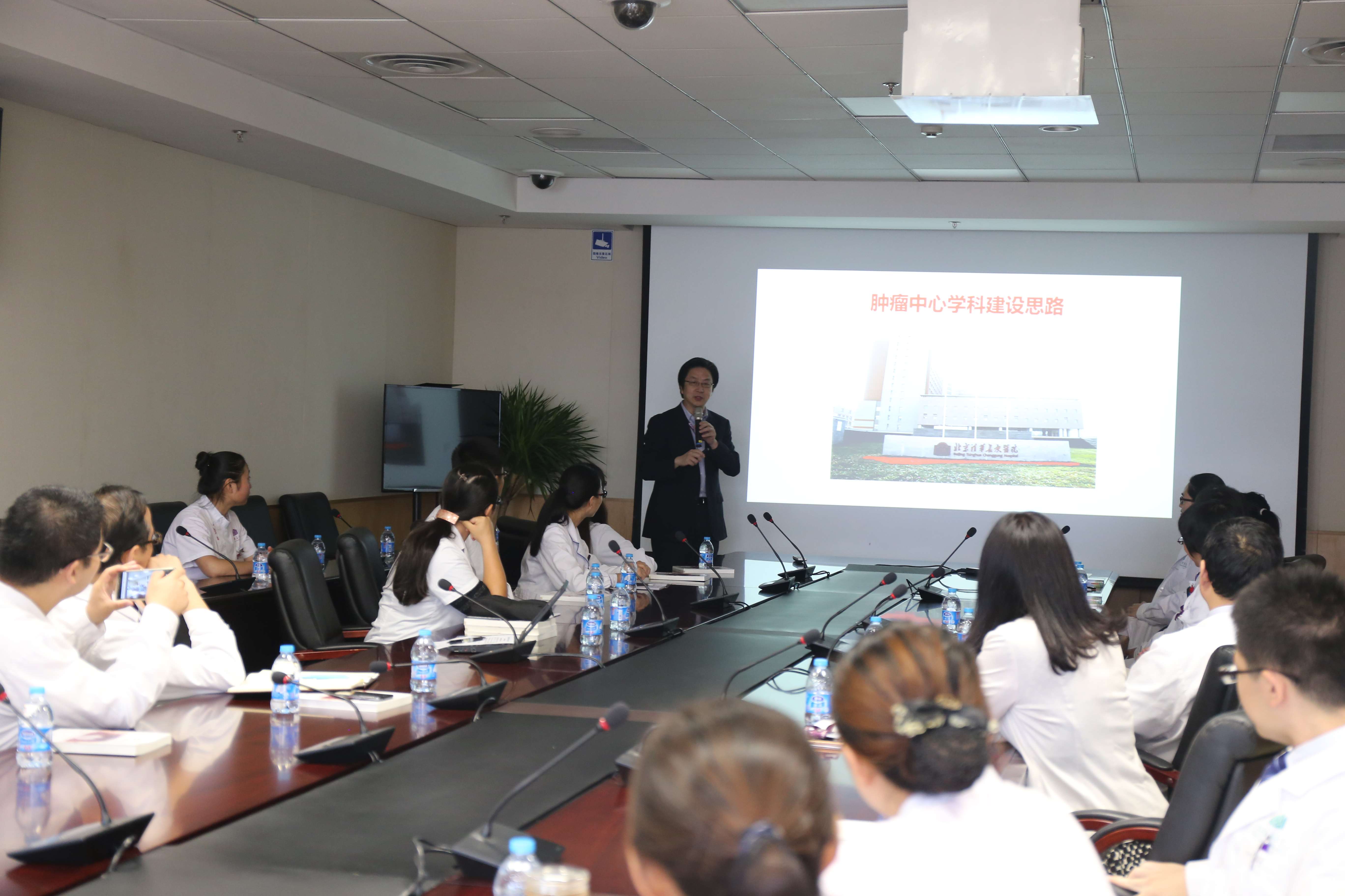 王志华秘书长对会议进行了总结发言,他提出,上级领导对医院和各科室的建设高度重视,我们应借鉴国内外肿瘤中心的先进经验,以建设“入主流、有特色、高水平”的科室为发展目标,以超前的认知和观点对肿瘤中心的建设进行规划。为实现这一目标,应重视“多学科各专科相结合”、“临床治疗与基础研究相结合”、“肿瘤治疗与优化管理相结合”、“临床医疗与人性化服务相结合”的四个方面工作。