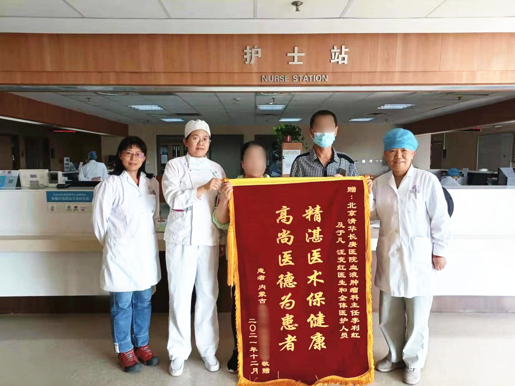 在应用ATG+CsA治疗的过程前后,血液科医护团队启用正压病房与无菌层流床相结合,为患者提供全环境保护,医护人员严密监测、精心护理,两名患者虽均经历长达1个月的粒细胞缺乏阶段及严重的免疫抑制,但均未出现药物过敏、严重感染等并发症,治疗后患者达到部分缓解的疗效,脱离输血,顺利出院继续随诊观察。自内蒙古远道而来京就医的男患者出院时,特为医护团队送上锦旗表达感恩。