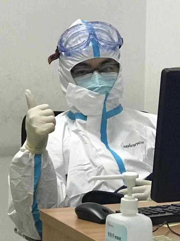 抗击新型冠状病毒的前期,大家对这一疾病的认识还是有限的,真正奋斗在第一线,每位医生心情都是忐忑的。经过紧张而有序的的防护培训后,几位“战士”来到发热门诊区域,穿着好防护服、隔离衣,带着双层的手套和口罩,全副武装进入到发热门诊,在感染科陈凯丽医师的帮助下,他们迅速熟悉了发热门诊疾病筛查和诊治流程,没想到的是,发热的患者比想象中要多得多,前半夜在忙碌中时间偷偷溜走,41个发热病人,2例疑似病例,但通过医院早已安排和演练的特殊路线,检查、隔离、全程消毒、专家会诊、向上报告的流程,顺利完成了隔离和送检核酸的工作。难熬的是后半夜,经过前半夜的工作,病人已经陆续减少,使得不能关窗的诊间更加清冷。在发热门诊的诊间,2个医生,2个护士,4把椅子,窗户外凌冽的寒风把诊室吹得透心凉,大家尽量将自己的身体蜷缩成一团,靠在一起相互取暖,互相鼓励,坚持,坚持就是胜利!最终从凌晨2点多到早上7点,6个小时的坚持后,窗外不仅照进了带给我们温暖的第一缕晨光,也响起了来接班的张晨光医师的声音,“两道’晨光’带来了温暖和希望” 周杰兴奋的说道。