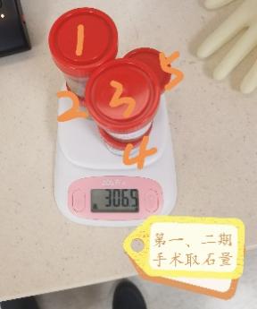 历经半年先后5期手术,最终完整保留住了患者右侧肾脏并清除了右肾的所有结石。术后总肾功能(血肌酐)稳定在150μmol/L(较术前下降90μmol/L),清除结石总重量约1.7斤。