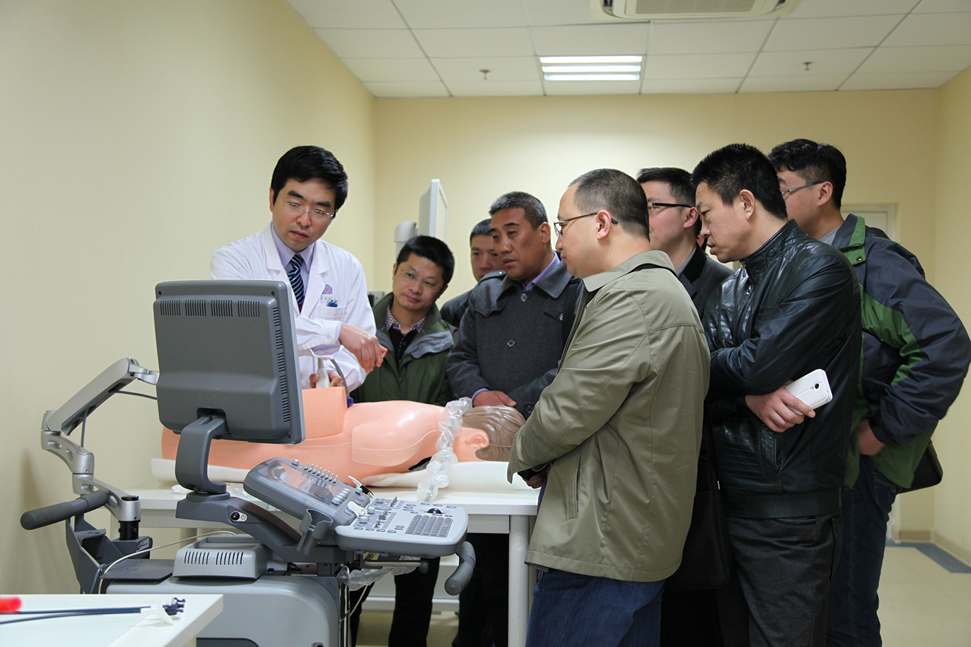 胡卫国医师对学员进行超声穿刺模拟操作的讲解