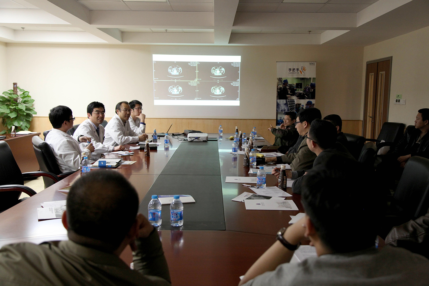 本次“手把手”培训班中汇聚了来自河北、江西、湖北、安徽、黑龙江等地的泌尿外科专家。采取“小、快、灵”的组班模式,减小培训班规模、提高教学质量,让每位学员都能够得到实际操作的经验。本期培训班按照以往的模式,分为两天,第一天为经皮肾镜与输尿管软镜的模拟器械训练与相关专题讲座、病例讨论,第二天为现场手术观摩与术中讨论。