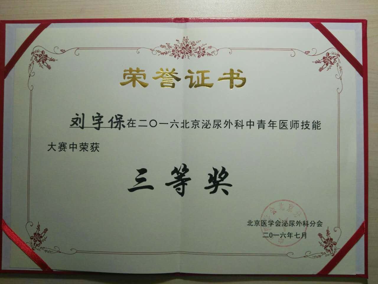 清华长庚医院7月25日电(泌尿外科 刘宇保)2016年7月23日,由北京医学会泌尿外科学分会主办的中青年医师演讲技能大赛在北京泌尿外科学术年会上隆重举行,我院泌尿外科刘宇保医师代表清华长庚泌尿外科参加此次大赛,并最终获得三等奖。