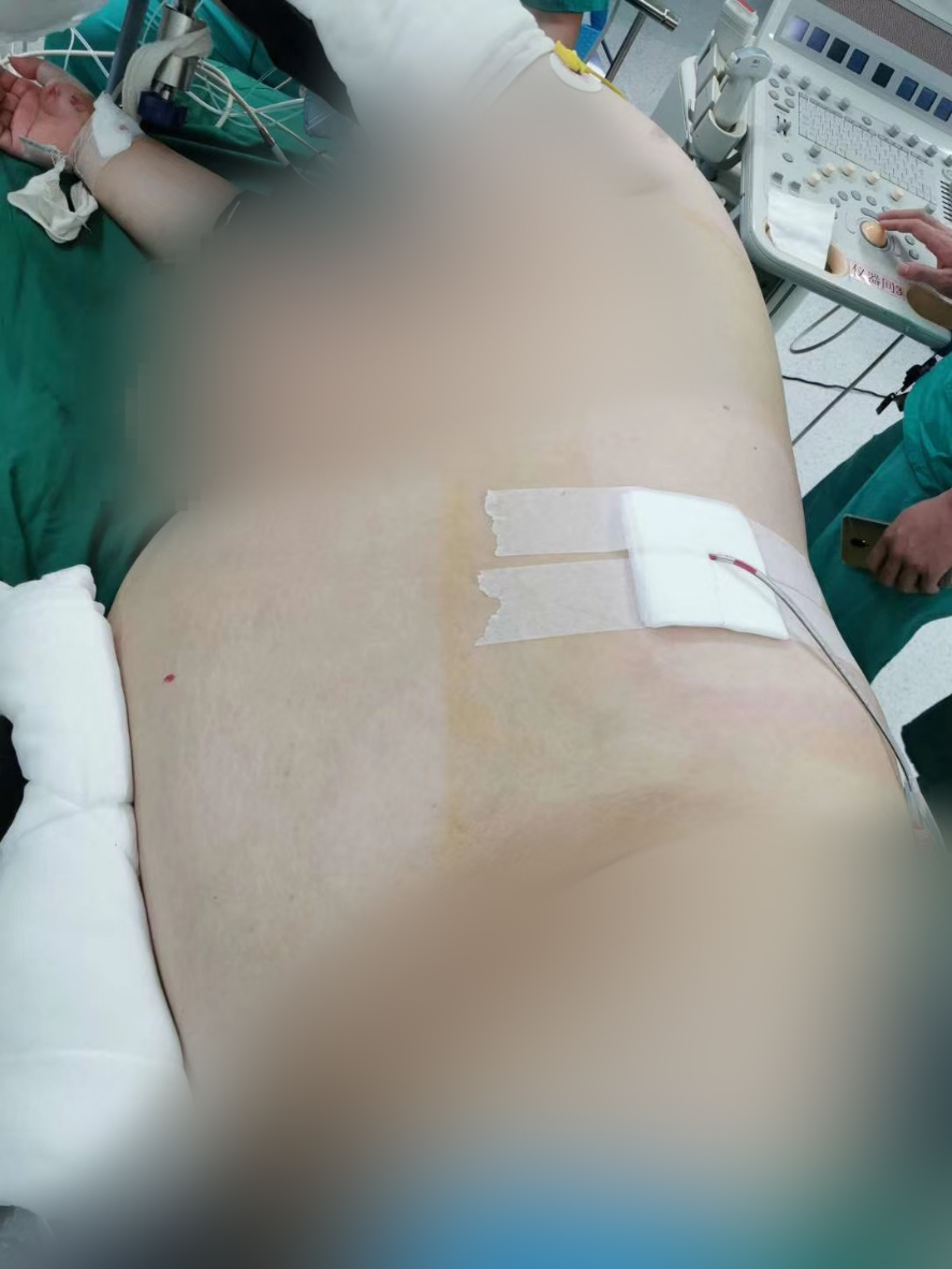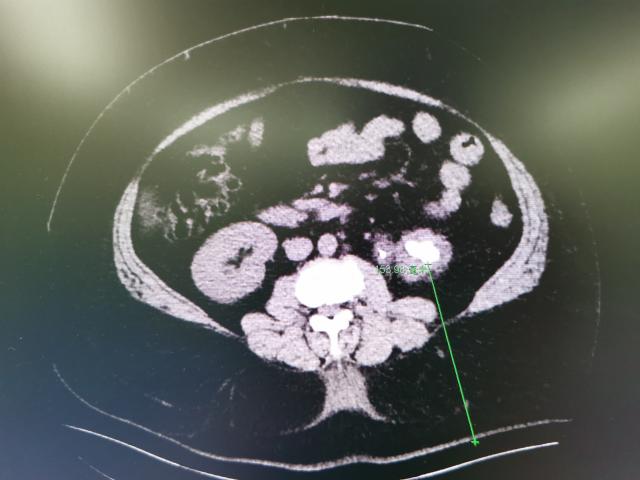 但这场手术与以往大有不同,考虑到患者的特殊体型与麻醉问题,常规通过俯卧位进行的手术,这次需要改为侧卧位,穿刺点也由后腰相应改为侧腰。肥胖导致的超声影像不清晰、定位不够精准、手术习惯的变化、麻醉给药的用量与顺序等问题都给主刀医生和麻醉医生带来了挑战。5月底,在泌尿外科主任李建兴的亲自坐镇指挥下,我院泌尿外科团队为患者进行手术。侧卧位和肥胖都明显增加了超声引导下经皮肾镜手术的难度,肖博凭借丰富的手术经验,准确定位,精准穿刺,快速清石,最终完美清除左肾结石,同时保证了麻醉的安全与手术的成功,术后体表仅留一根肾造瘘管。