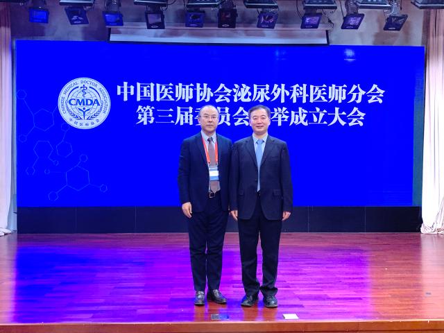 李建兴(左)与中国医师协会泌尿外科医师分会新任会长邢念增(右)合影