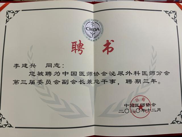北京清华长庚医院12月21日电(通讯员 南子钰)12月19日,中国医师协会泌尿外科医师分会 (CUDA)第三届委员会选举成立大会在京召开,清华大学附属北京清华长庚医院外科部副部长、泌尿外科主任李建兴当选第三届委员会副会长兼总干事。