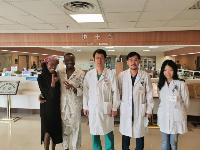 北京清华长庚医院5月12日电(通讯员 于悦超)近日,尼日利亚籍小伙小金从清华长庚泌尿外科康复出院,“I’m very satisfied.Thank you !”(我非常满意,谢谢你们)小金说,笑着和医务人员合影留念,还比出庆祝出院的手势。