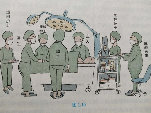 一台手术从来不可能是一个人完成的,它是一个团队共同合作的结果。那么—台手术到底有多少医务工作者参与呢?(如图1.10)