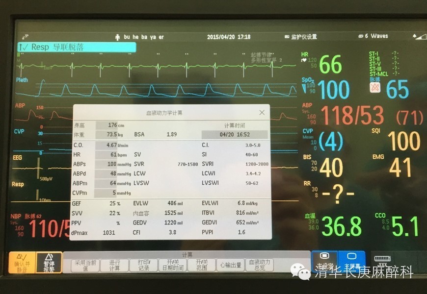 自2014年11月28日开院至今,在仅开放6个全麻手术间的情况下,麻醉科已成功完成手术内麻醉2352例,其中,全身麻醉1379例,占比58.63%,神经阻滞麻醉21例;ASAIII级以上病人159例,占比6.76%。在夯实临床基础业务的同时,我科紧跟麻醉专业前沿发展,使用肺动脉导管、PICCO、Vigileo及血栓弹力图等多种先进监测技术完善危重病人的术中管理,提升麻醉品质。
