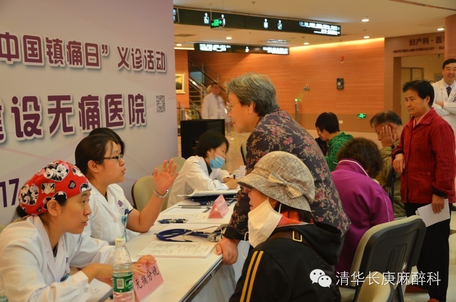 为广大病患祛除病痛,一直是麻醉疼痛科奋斗的目标。开院以来,疼痛门诊共诊治486人次,完成等各类治疗184人次, 病种涉及颈肩腰腿疼、神经性疼痛、癌症疼痛及各种难治性疼痛、临终关怀等,满意度接近100%。为迎接“世界镇痛日”,普及镇痛知识,10月17日,我科举行以“摆脱疼痛困扰,建设无痛医院”为主题的大型公益活动,力图帮助广大民众正确认识疼痛,及时治疗、及时克服。此外,疼痛门诊还承担了无痛胃肠镜的麻醉前评估工作,保障了手术室外无痛治疗技术的顺利开展。