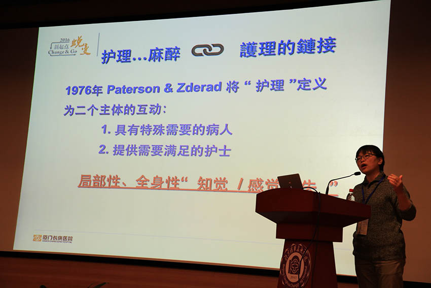 首先,高雄长庚医院麻醉科的护理专家涂淑敏作了开场演讲,她针对现阶段国内比较争议的几点问题,例如麻醉科与恢复室的归属与管理、麻醉护理岗位的编制及职责范围、麻醉护理安全等阐述了个人观点,演讲获得了与会人员的一致好评。