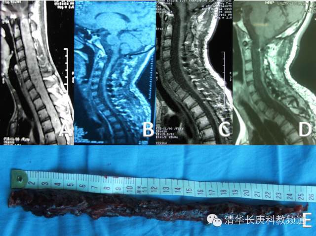 巨大脊髓室管膜瘤自脑干延髓至胸6脊髓水平长达26cm手术完全切除1年及5年MRI随访,结果良好,是目前文献报道最长的