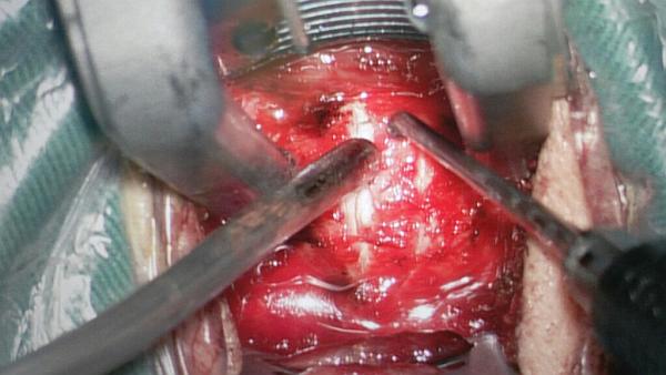 显微镜下使用超声骨刀磨除增生骨质