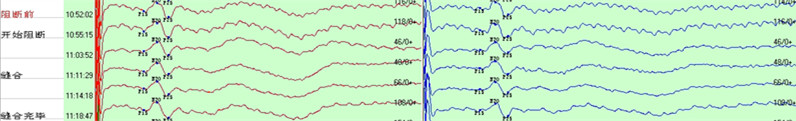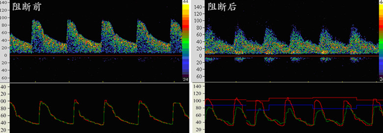 图2.TCD实时监测见阻断后血流仅轻度下降