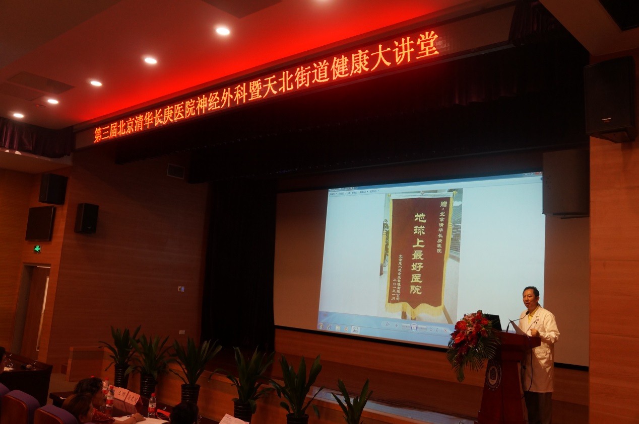 清华长庚医院6月23日电(通讯员 师炜)2016年6月22日上午09时,由北京清华长庚医院神经外科和昌平区天通苑北街道办事处(以下简称天北街道办)共同举办的第三期健康大讲堂——“老年人脑血管病的预防与治疗”及“颈椎病预防与微创治疗”主题讲座如期在我院行政楼4层集会厅进行,这也是我院神经外科继“护脑行动”、“爱我脊柱”大讲堂后第三次成功举办的大型系列惠民科普活动。