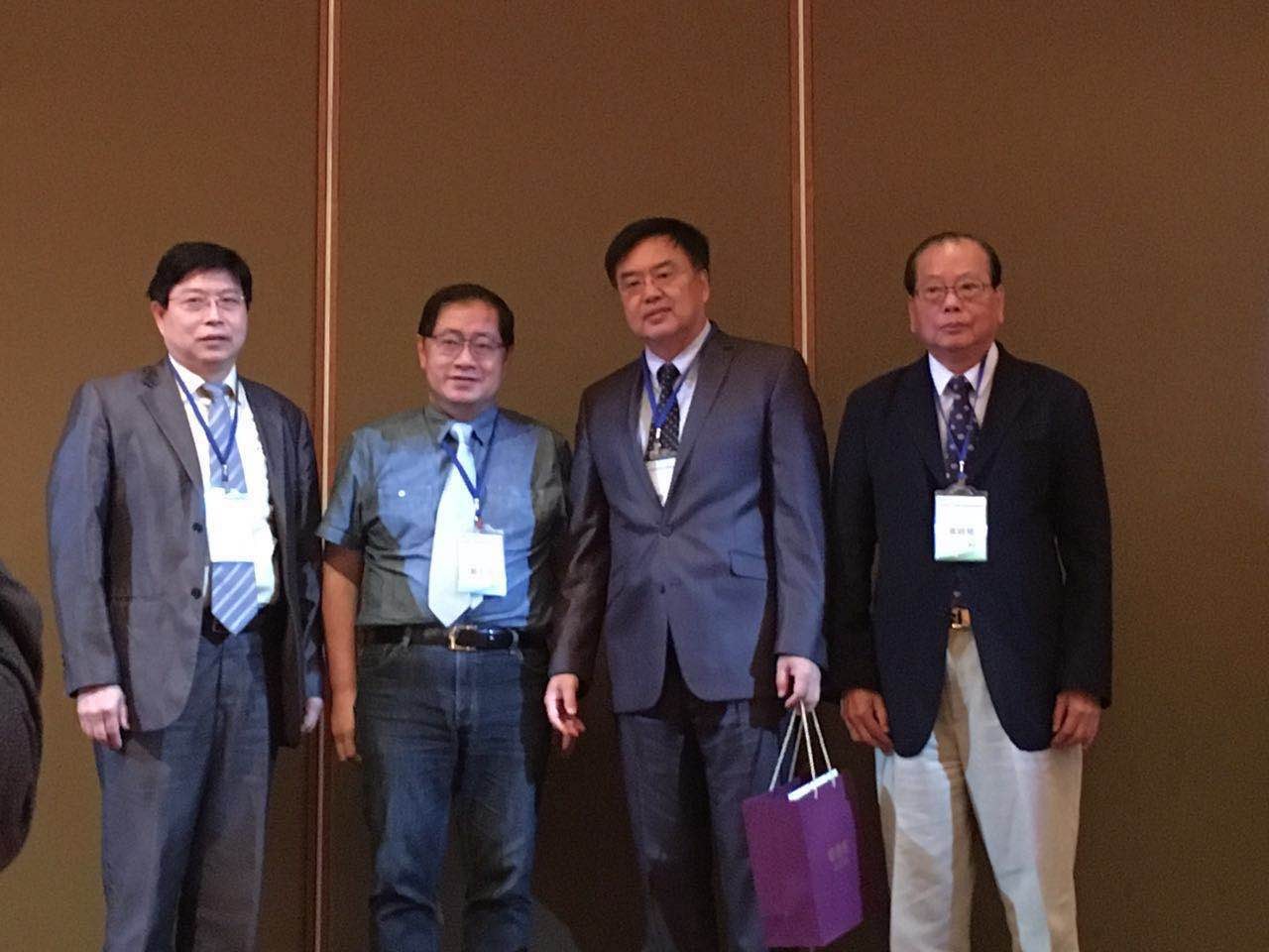 图1:台湾郑宏志理事长、高明见教授及沈炯祺教授为王劲副院长颁发证书和荣誉状