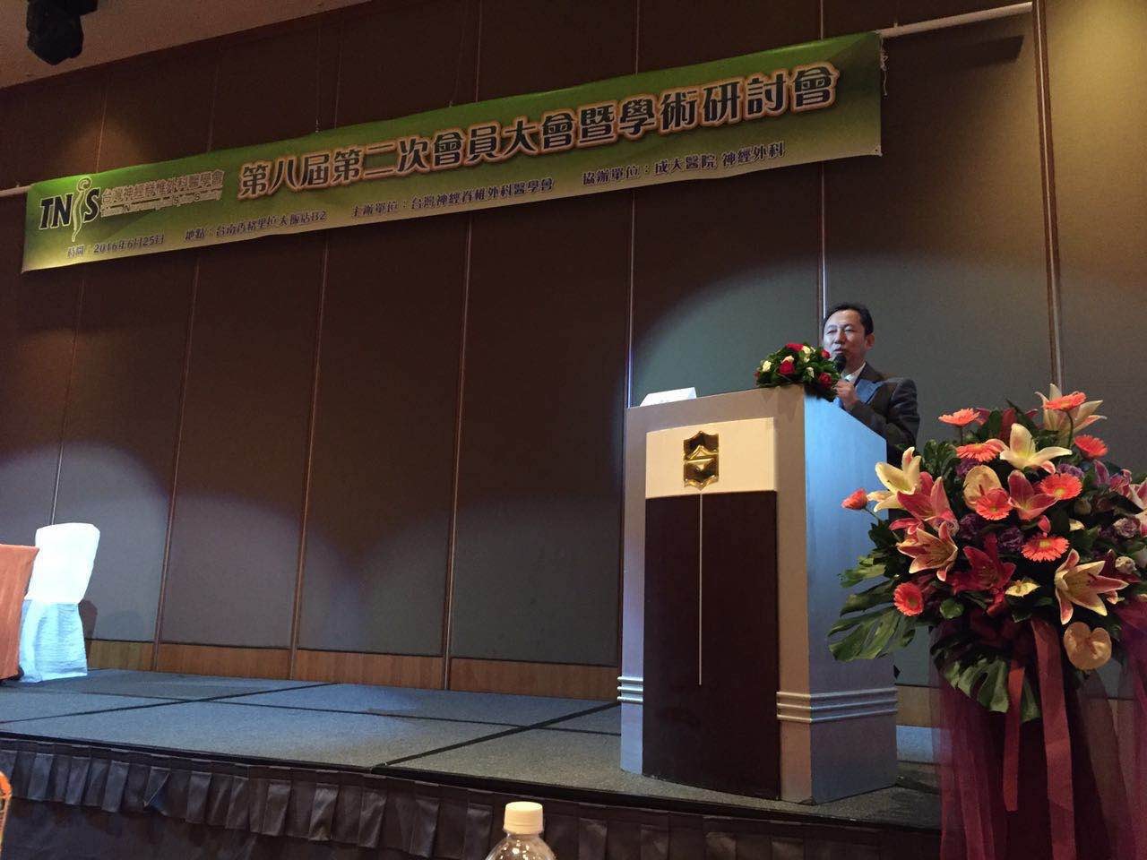 清华长庚医院6月28日电(神经外科 刘东康)2016年6月25日-26日,台湾神经脊柱外科医学会第八届第二次学术研讨会在台南成功召开。北京清华长庚医院王劲副院长、神经外科王贵怀主任作为大陆唯一受邀嘉宾,代表大陆神经脊柱外科参加此次学术盛会。王劲副院长做了“罕见脊髓肿瘤”,王贵怀主任做了“脊髓内肿瘤外科治疗新进展”的报告,精彩纷呈,反响剧烈,受到台湾同道一致称赞。此次大会期间两位教授与台湾同道充分探讨学术,交流心得,分享新技术与理念,极大地推动了两岸神经脊柱外科学术与技术的交流。