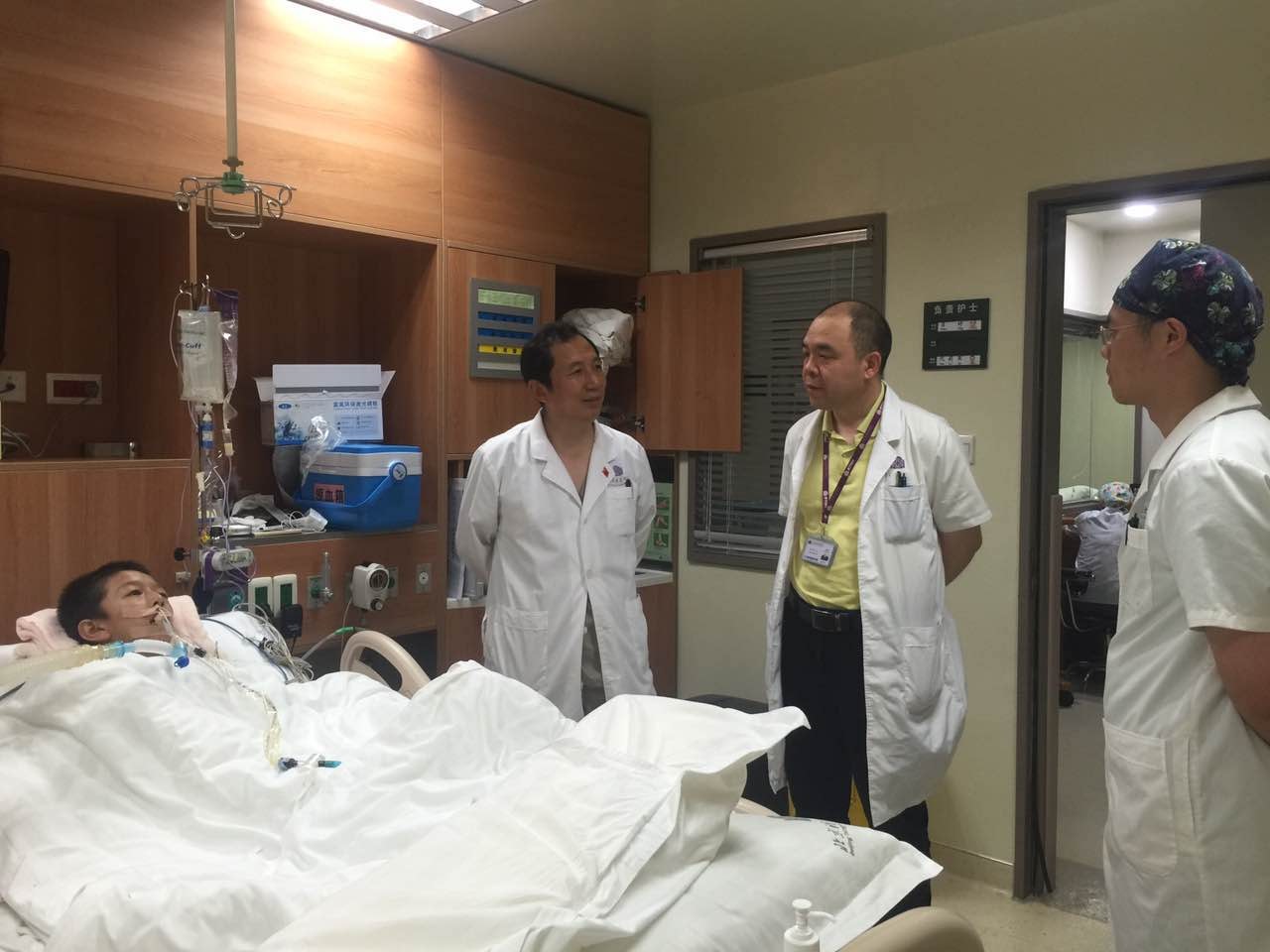 (术后神经外科王贵怀主任与胸外科陈东红主任一起查看患儿,探讨病情及术后治疗方案。)
