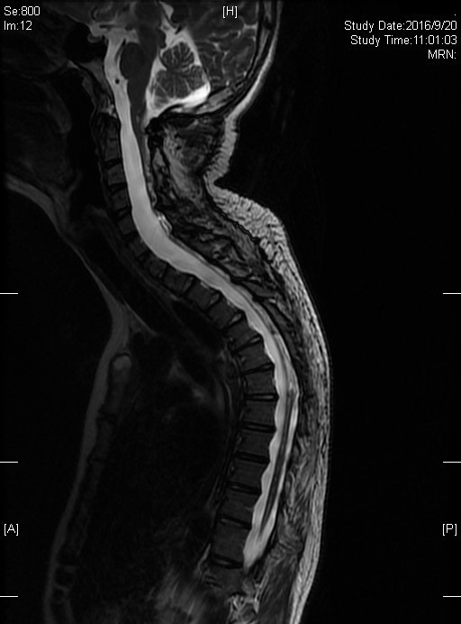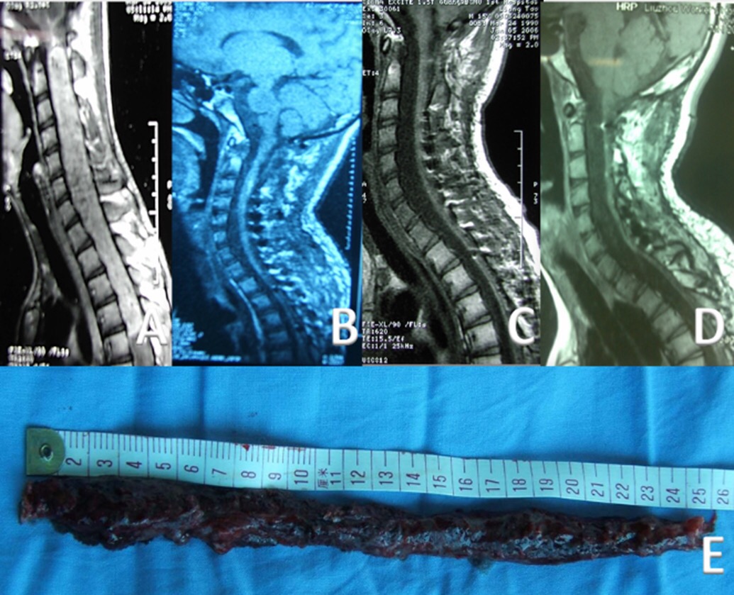 2016年09月20日,25岁的患者来到北京清华长庚医院神经外科复查。在看到患者的瞬间,11年前的手术让王贵怀教授记忆犹新,历历在目。“患者小涛是从遥远的贵州北上前来寻医,才14岁,第一次到我的诊室时是被他父亲用轮椅推进来的。” 王贵怀教授说道, “检查后确诊了小涛的病情——从脑干到第六胸椎的脊髓髓腔内生长着一条长达26厘米的肿瘤。那是我见到过的最长的肿瘤,也正因为肿瘤超长,患病两年,小涛一直没有得到手术治疗,四肢瘫痪,大小便失禁,甚至已经影响到了呼吸。