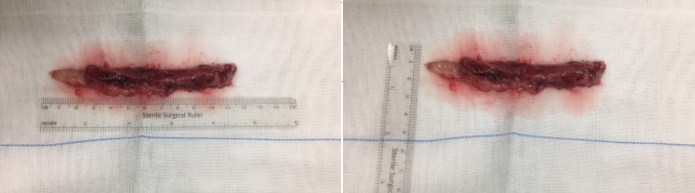 术中近全切除肿瘤近12cm长,最宽处直径约2cm