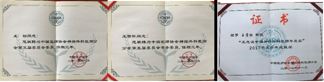 王忠诚中国神经外科医师年度奖由中国医师协会神经外科医师分会、北京市王忠诚医学基金会于2005年创立,旨在表彰对中国神经外科事业作出突出贡献的神经外科医师,并鼓励全国神经外科医师发扬王忠诚院士的高尚医德和严谨治学精神。该奖每年评选一次,2017年度共评出3名终身荣誉奖、3名学术成就奖和5名青年医师奖获得者。王贵怀感慨道:“前人栽树,后人乘凉。今天获奖,我特别感谢恩师的言传身教,感谢帮助过我的每一位师长与同事,并深深地感谢那些信任我们、接受我们治疗的广大患者。我将继续为发展神经外科事业而努力奋斗!”