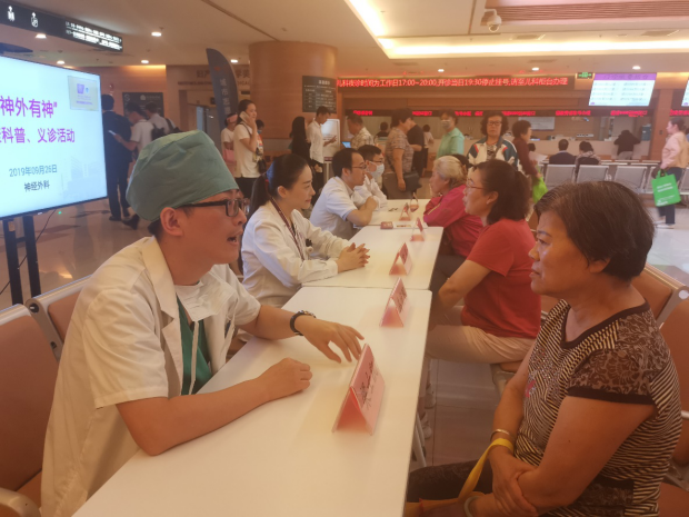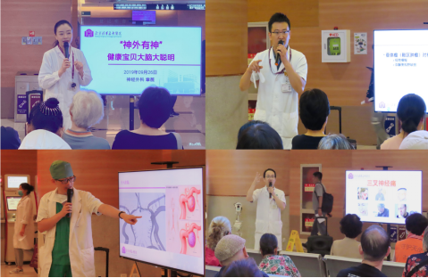 北京清华长庚医院9月27日电 (神经外科 张晓磊)为响应国务院“健康中国行动”,提升公众健康素养,打造健康社区,在新中国成立70周年、北京清华长庚医院开业5周年之际,神经外科于2019年9月26日上午在北京清华长庚医院门诊大厅一楼举办了“神外有神”系列健康科普宣教及义诊活动的第一期,用幽默诙谐、通俗易懂的语言,为公众带来了一场丰盛的医学科普盛宴。