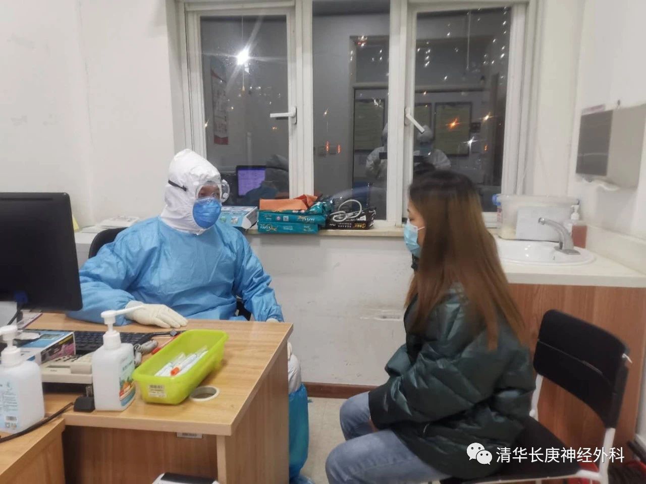 此次,神经外科分两批次共派出6名医护人员分别支援发热门诊及小汤山医院,没能支援的医护在神外病区也积极配合防疫工作,照顾好病人的同时,陪护工作也是一道难关,护士长带领责护们耐心的跟家属解释沟通,并每日安排人员严格筛查陪护,测量体温,疫情爆发至今病区安定,病人病情平稳,家属表示是护士长和护士们的耐心和细心打动他们愿意配合。
