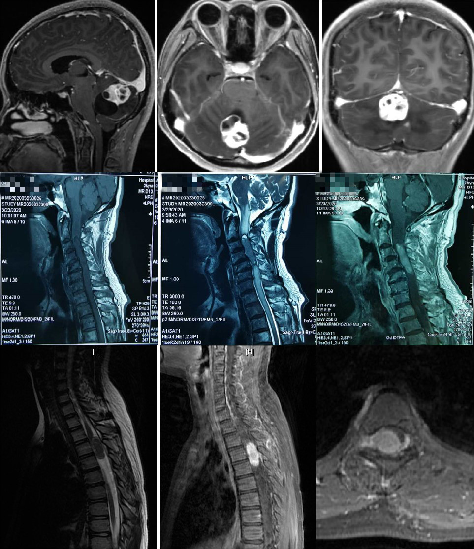 今年30岁的张先生2016年因为外伤做了“颅内血肿清除+去骨瓣减压术”,术后3个月又做了“颅骨修补术”。本来大难不死,身体又没有大的残疾,全家人都满心欢喜的准备迎接新的生活,但现实却给他开了个玩笑。张先生在体检中发现“颈1至颈2水平脊髓肿瘤”,在当地四处求医之后,医生们给出的结论都是“手术风险很高,有瘫痪甚至死亡的风险”,考虑到上有老下有小,作为家里唯一的顶梁柱,他不能也不敢倒下。为了这个家庭,他决定“带瘤”观察,不做任何治疗,继续工作挣钱养家。