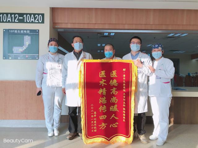 术后当天,患者被转入ICU病房进行严密观察治疗,第二日顺利转回普通病房。麻醉清醒后,蔡先生马上发现麻木的感觉消失了,四肢活动也有明显的改善。出院前,蔡先生特意为科室送来了锦旗,表达对王贵怀主任与张培海医师的感谢。“手术后我觉得浑身非常轻松。感谢两位大夫,我现在感觉好多了。”蔡先生说。