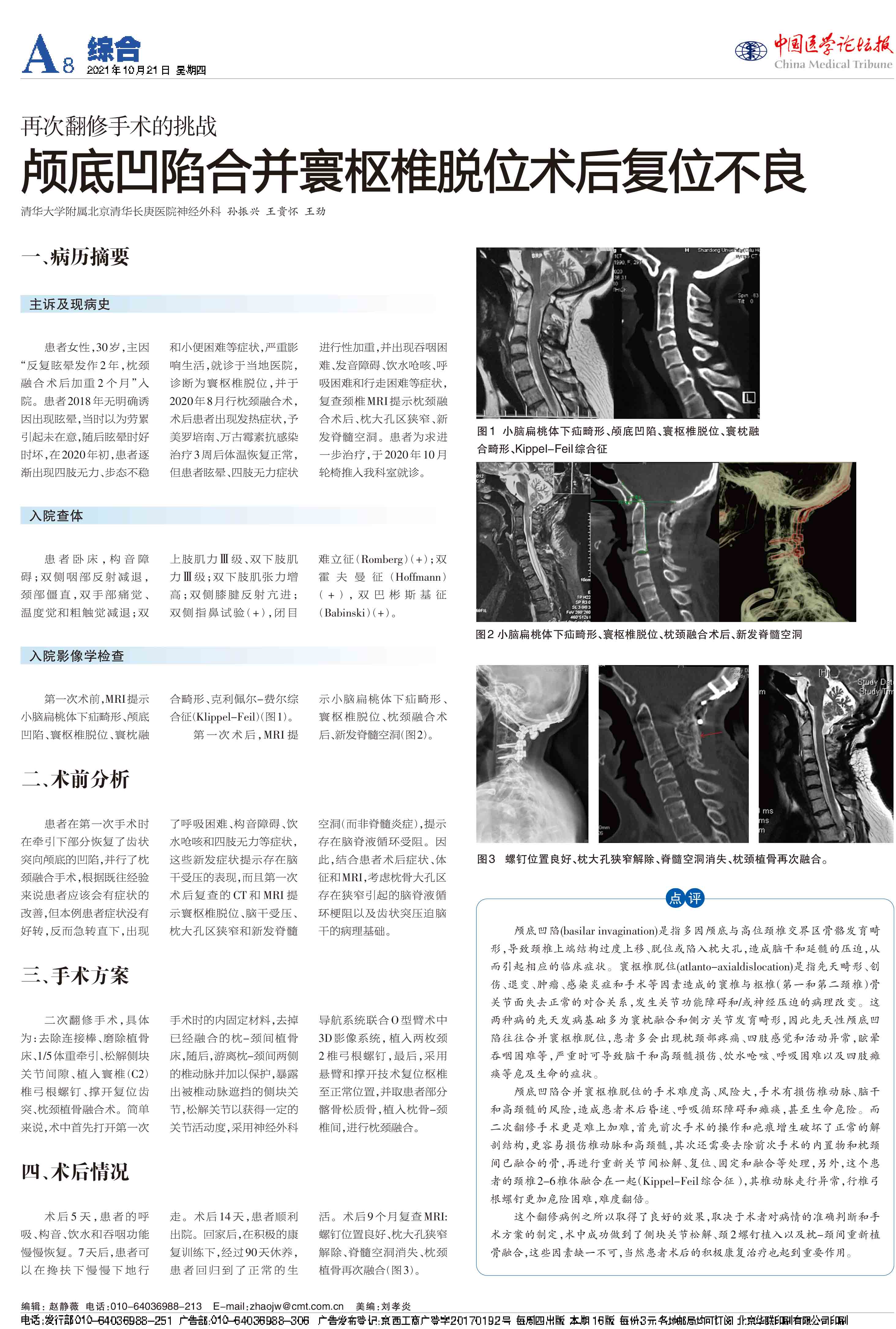 《中国医学论坛报》整版报道神经外科再次翻修手术的挑战 颅底凹陷合并寰枢椎脱位术后复位不良